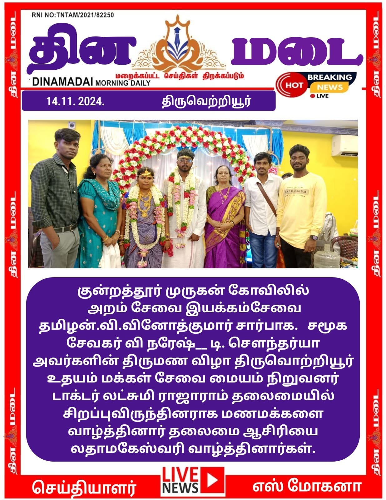 Categories News Attended marriage function in Kunrathur Murugan Kovil and blessed the couples. By admin November 14, 2024 Attended marriage function in Kunrathur Murugan Kovil and blessed the couples. Share this:FacebookXLike this:Like Loading... Related